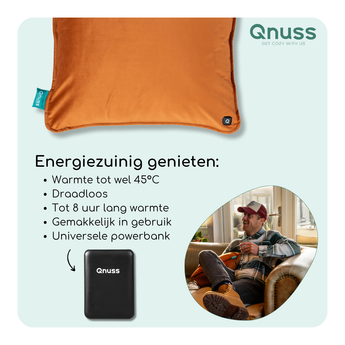 Waarom de hele kamer verwarmen als je alleen op de bank zit? Het Qnuss warmtekussen verwarmt jou direct, zodat de thermostaat gerust een graad lager kan. Slim besparen op energie én toch heerlijk warm blijven – dat is comfortabel investeren.