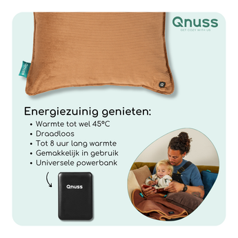 Always bothered by cold evenings, even under a pile of blankets? With the Qnuss heat cushion, that is a thing of the past. The infrared heat provides immediate deep warmth, exactly where you need it. This way you enjoy cozy comfort, without ever shivering again.